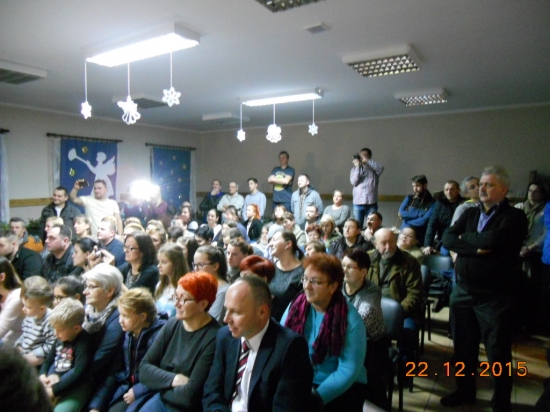 Przedszkolaki i uczniowie pięknie zaprezentowali się w widowisku o Bożym Narodzeniu, a wszyscy mieli okazję do wspólnego zaśpiewania kolęd i pastorałek. Po występie życzenia świąteczne i noworoczne złożyli mieszkańcom i uczniom dyrektor Zespołu Szkół w Rzeczenicy, pan Wójt i sołtys Pieniężnicy.